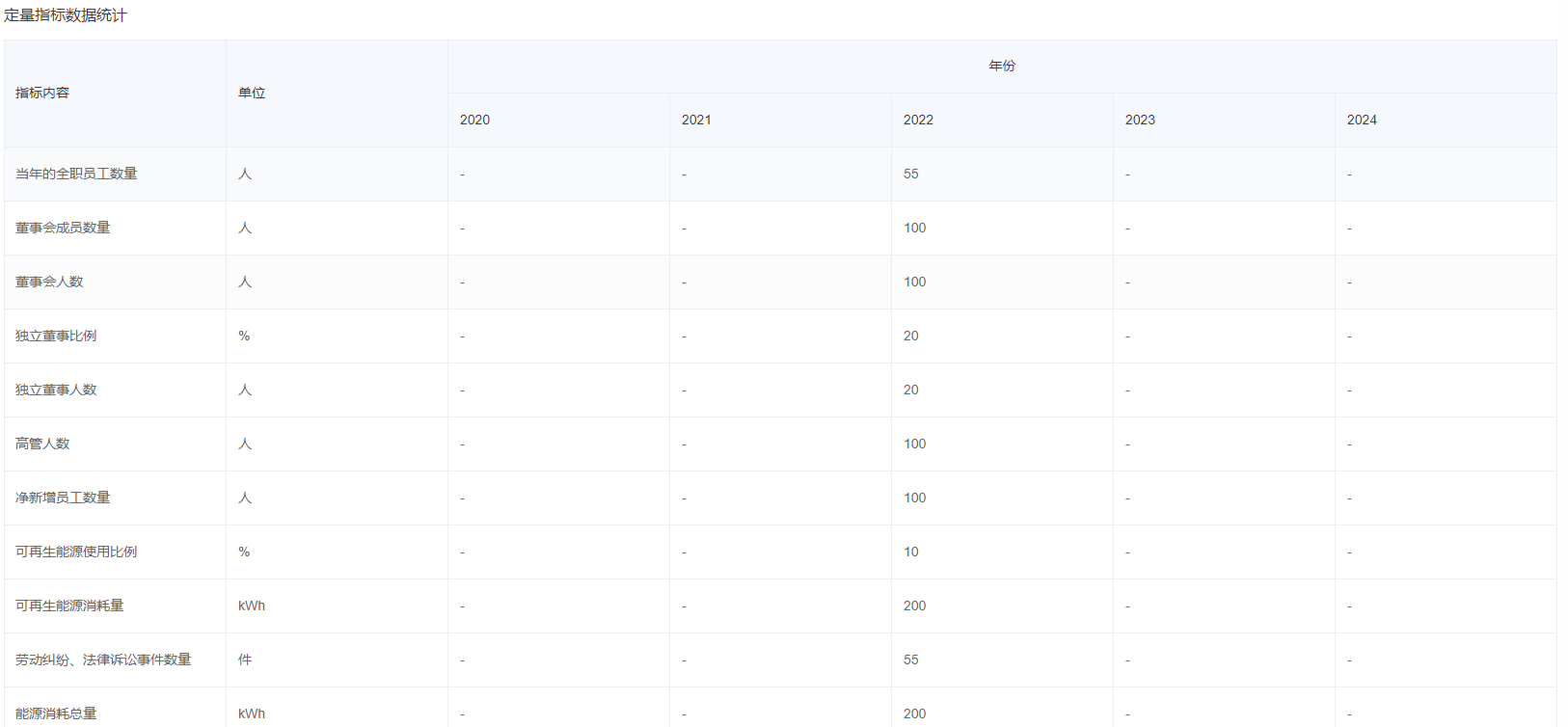 定量指标数据统计 统计企业近五年填报过的所有定量指标以及填报的具体数值。