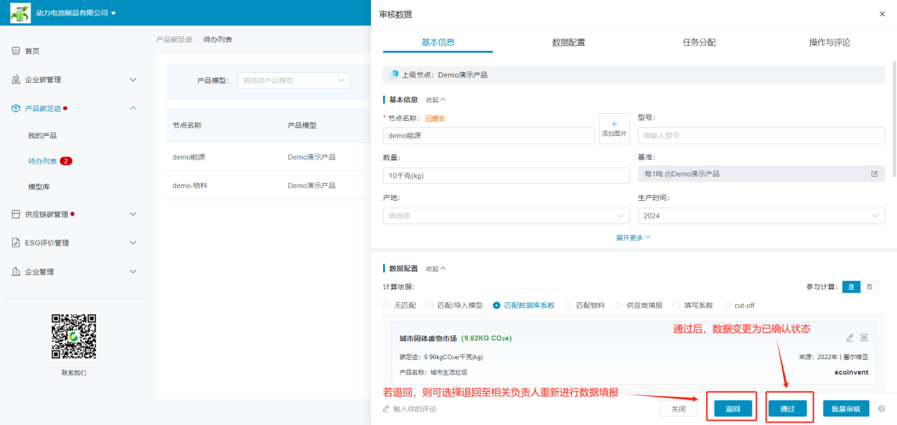 节点负责人:支持填报活动数据(数量)、选择排放因子(计算依据),同时支持数据审核;